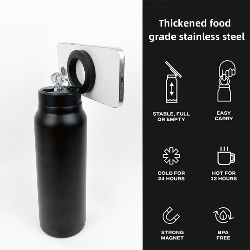 The NexMag Magnetic Bottle is crafted from thickened food-grade stainless steel, combining durability with everyday performance. It’s BPA-free, easy to carry, and engineered to keep drinks cold for up to 24 hours or hot for 12 hours. The powerful built-in MagSafe magnet ensures your phone stays steady — whether your bottle is full, empty, or on the move.