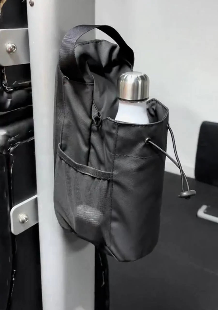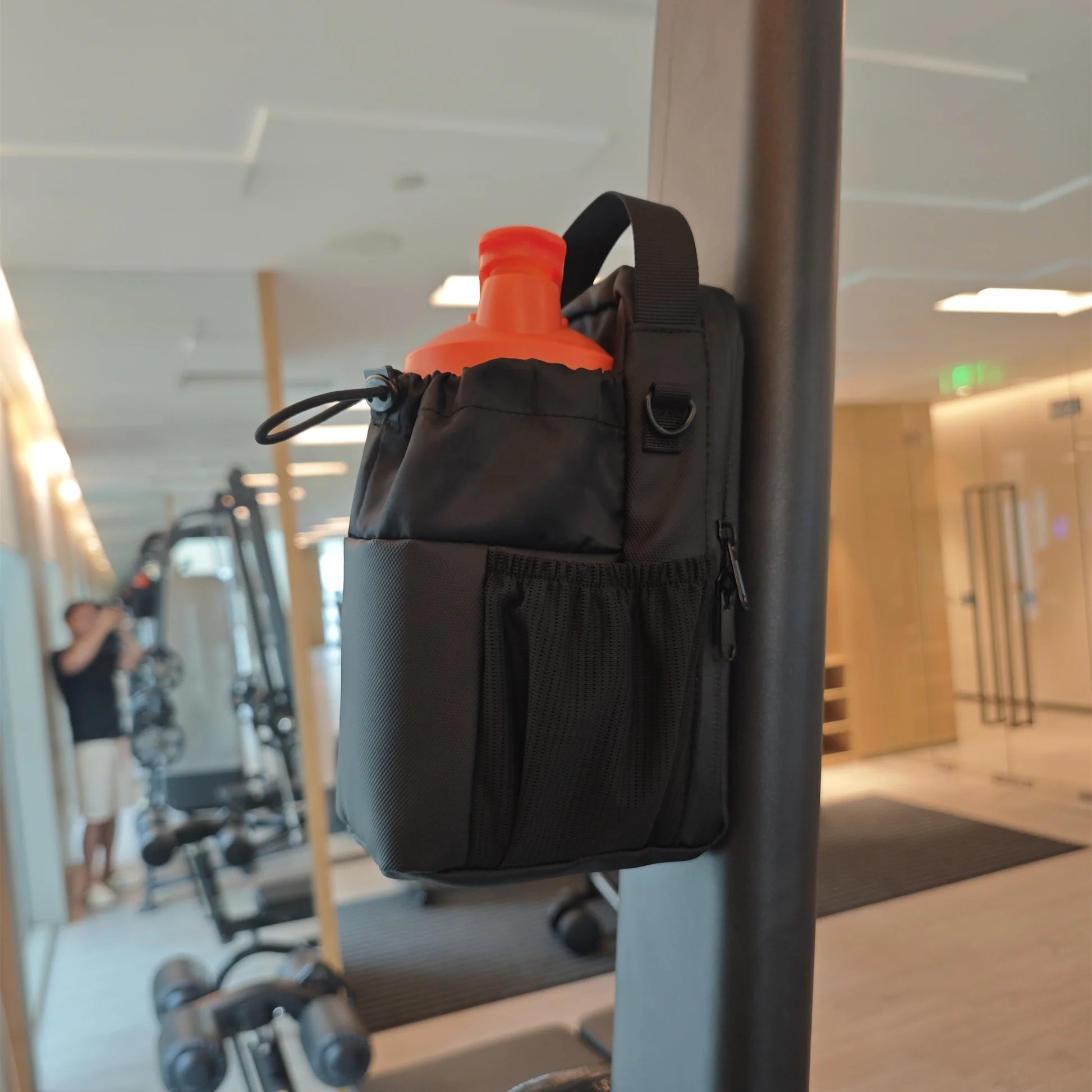 Great bag for the gym! Holds my shaker bottle and has room for phone and keys. Super handy to hang on equipment.